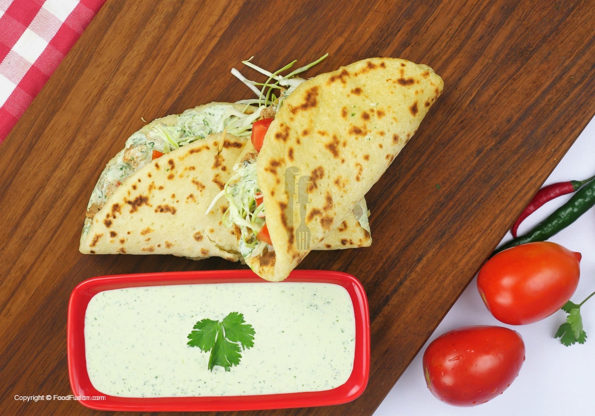 Take naam,add chicken,onion,tomato,cabbage and drizzle chutney.