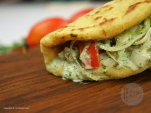 Cover one side of naan, pierce the tooth pick and serve with chutney.
