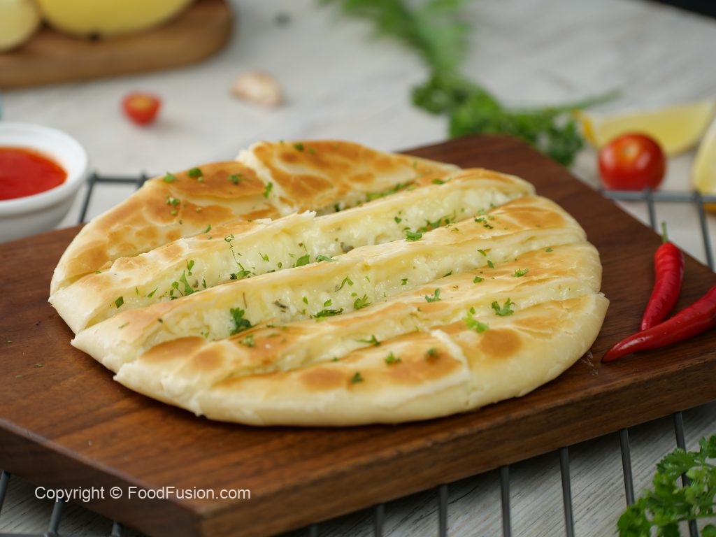 -Rolled dough ka center mein mozzarella cheese,tayyar mashed potato mixture aur mozzarella cheese dal dein.