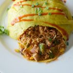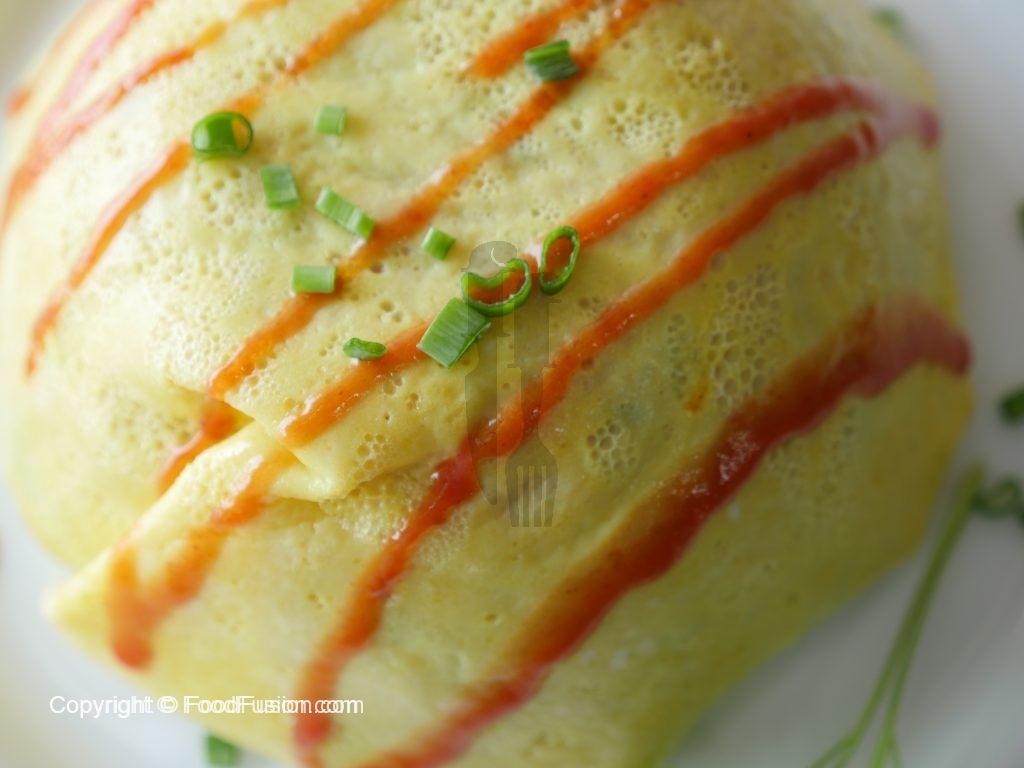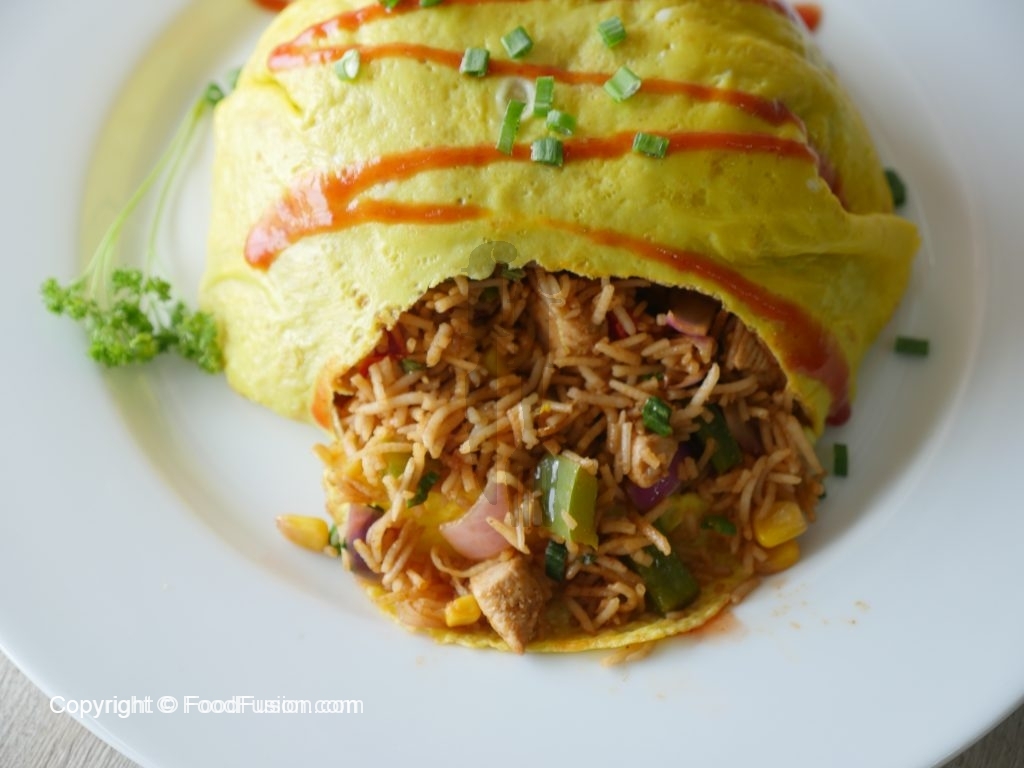 In a bowl,place cooked omelet and cooked rice & fold all sides.