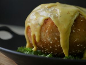 -Dip the flat surface of bun in water & coat the surface with sesame seeds then set aside.