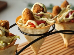 -In a wok add cooking oil, julienne carrot, shredded cabbage, corn kernels, julienne capsicum, zucchini, mushrooms & sauté for 2 minutes on medium flame.