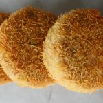 Dip kabab into beaten eggs then coat in crushed vermicelli (makes 8-10).