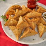 -Add prepared filling,apply water,fold & seal corners to make a samosa (makes 25-30).