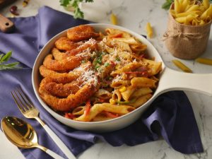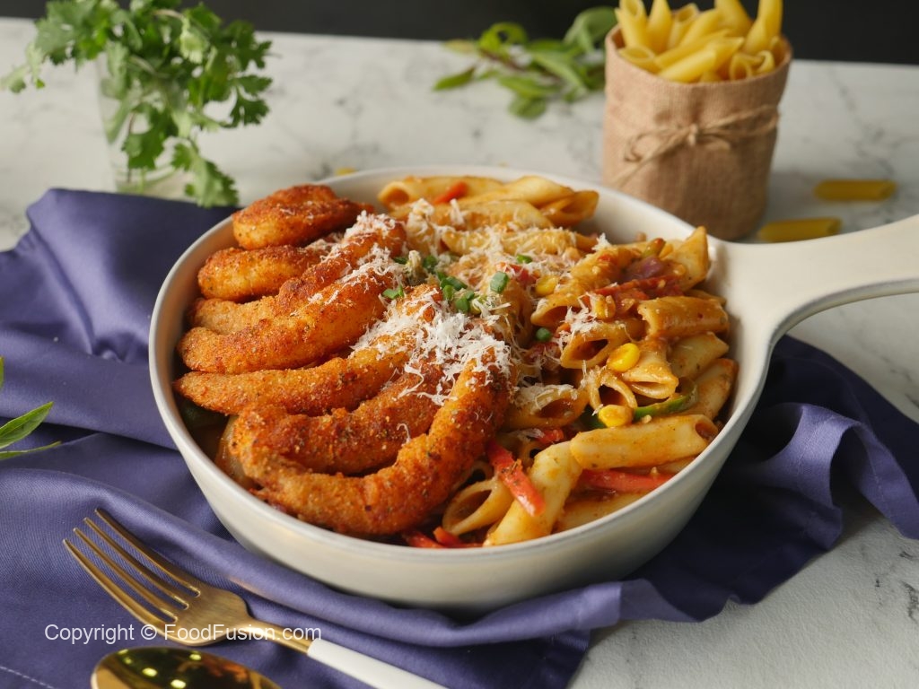 • Penne pasta 150g (boiled as per pack’s instruction)