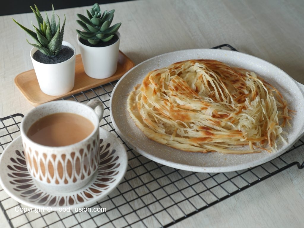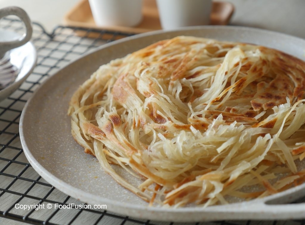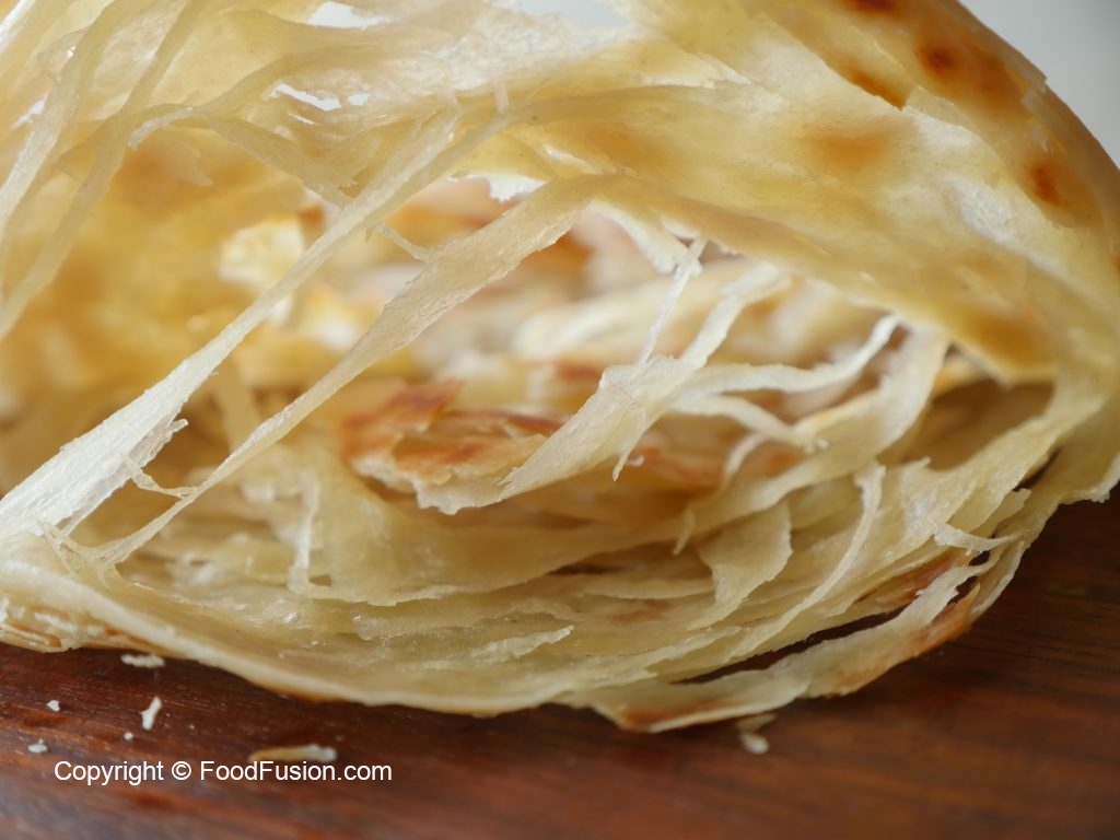 Haath ko ghee sa grease karein aur gently press ker ka dough ko haath ki madad sa paratha ki tarhan pheela lein (makes 4).
