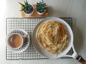 Add & spread ghee,sprinkle dry flour and cut into thin strips with cutter.