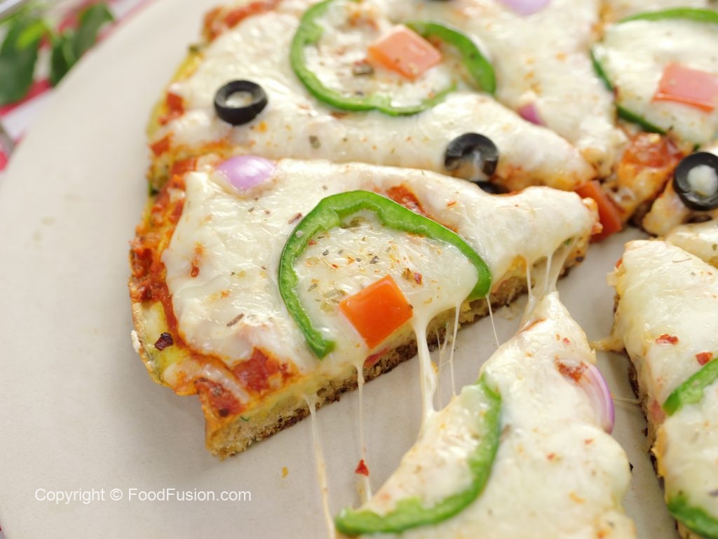-Add & spread pizza sauce,add cheddar cheese,mozzarella cheese,capsicum,tomato,onion & black olives.