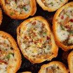 -Add cheese slice,beef filling,cheddar cheese,dried oregano & red chilli crushed (makes 12-14).