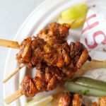 -Thread marinated chicken in wooden skewers (make 7-8 skewers).