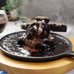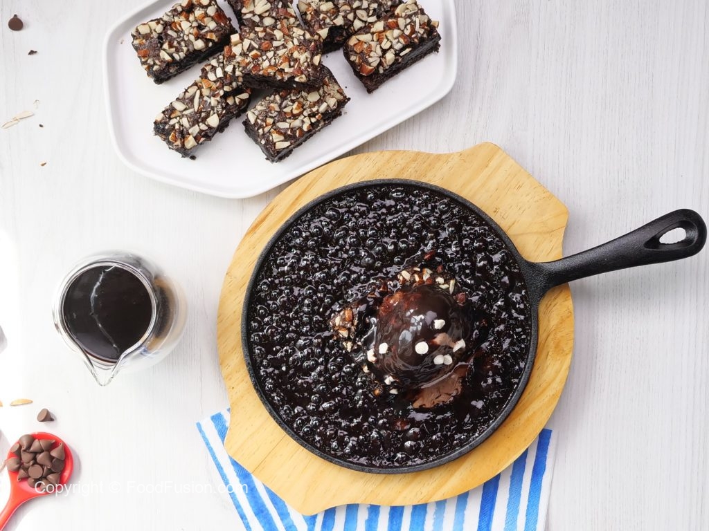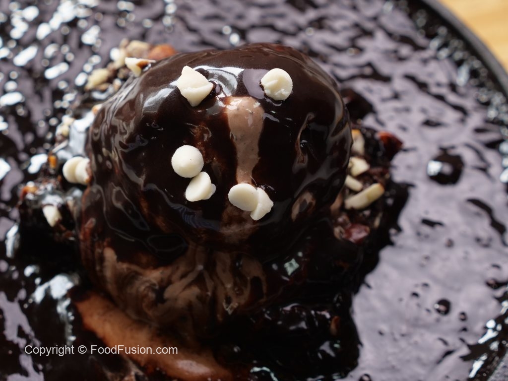 -Heat sizzler pan,place brownie,belgian chocolate ice cream & pour prepared chcoolate sauce.