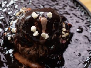 Fudgy Almond brownie sizzler with Belgian chocolate ice-cream