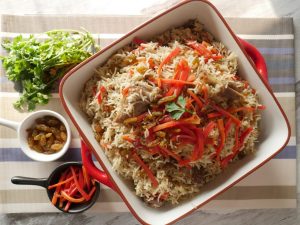 Chawal boiled adhay dal dein,fried pyaz,baqi bachay hoye chawal,fried pyaz,zarda ka rang pani mein dissolve ker ka dal dein,adrak dal ker dhak dein aur 10-15 minutes kliya steam cook ker lein.