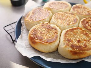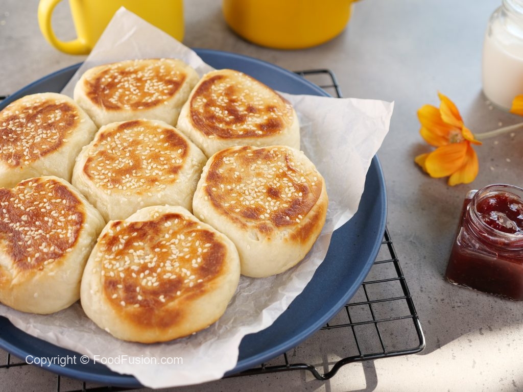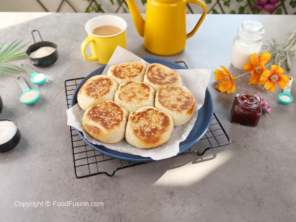 -Grease thick bottom frying pan with cooking oil,place dough balls (give a little space between dough balls),cover with cling film & let it proof for 30 minutes.