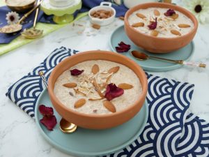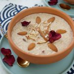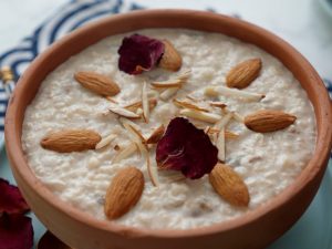 Garnish with almonds,dried rose petals & serve chilled.