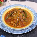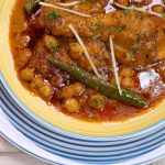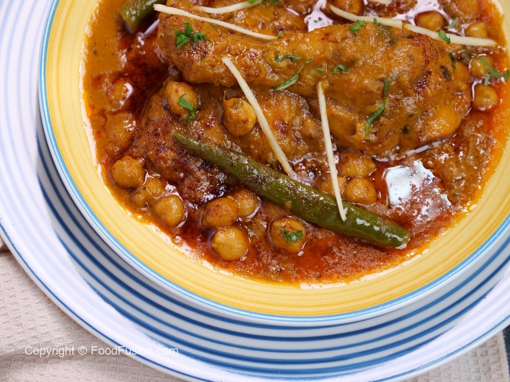 In a serving plate,tandoori chicken,channa gravy & garnish with ginger,fresh coriander & serve!