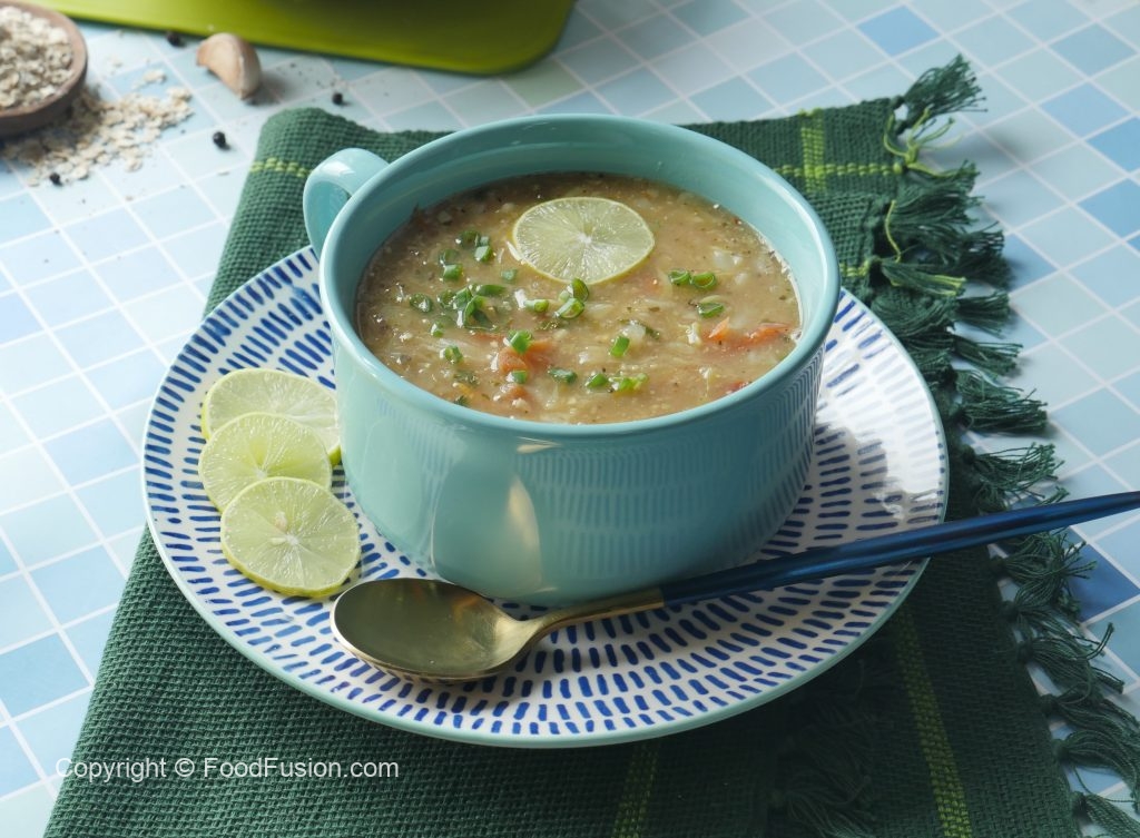 Now add dissolved oats mixture,mix well and cook until soup is thick (approx. 2-3 minutes).